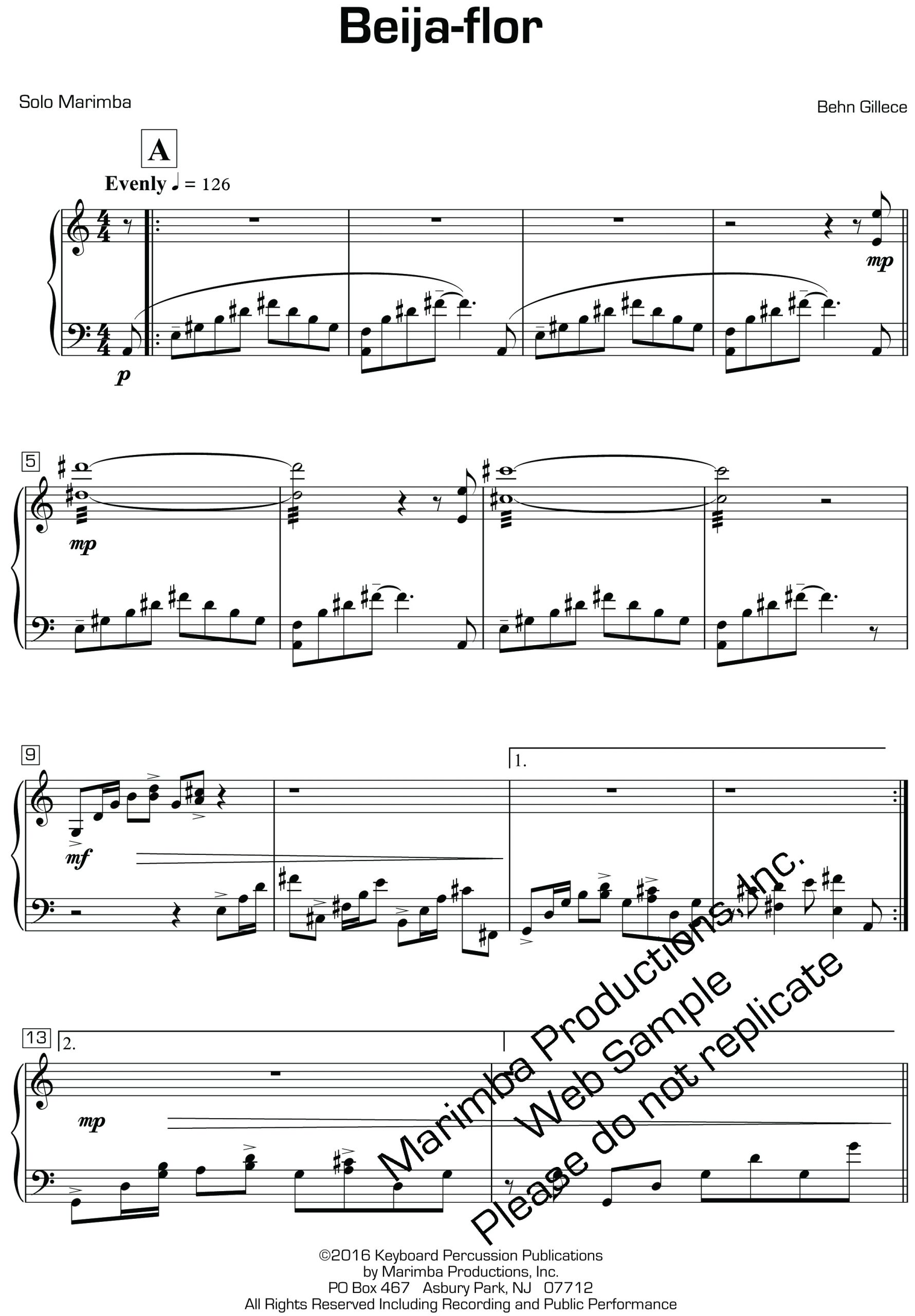 The Brazilian-Portugese title Beija Flor translates to “hummingbird” in English. The piece draws heavily on the Brazilian bossa nova style and is inspired by sounds found in nature. It was originally conceived as a solo vibraphone piece and later adapted for marimba. While Beija Flor offers a technical challenge for players, listeners may also find it accessible and melodic.