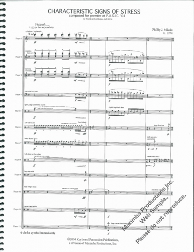 The motivation behind the piece comes from the sheer stress resulting from the logistics of assembling and preparing for a showcase performance. Not only does the piece sound “stressed” but as you watch each performer execute his part you should see signs of stress in their movements, both between and around the instruments.