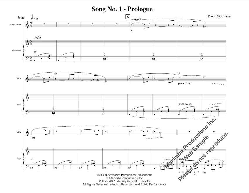 Described by the composer as “a musical exploration of the relationship between two people, any two people, at any given point in time.” A must play for any joint recital. The songs may be performed individually or as a set. 5.0 octave marimba required. Duration: 19 minutes.