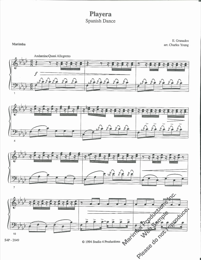 $12.00A traditional Japanese lullaby, arranged for alto saxophone (who also plays tam -tam), marimba (4 mallets) and percussion (crotales or glockenspiel, wood block, and triangle). ‘Ora No Omboko’s’ delicate textures and haunting melodic material make a lovely change of pace for any performance situation. The piece also provides excellent small ensemble experience for the intermediate marimbist and percussionist.